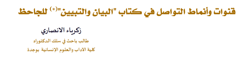 قنوات وأنماط التواصل في كتاب البيان والتبيين للجاحظ