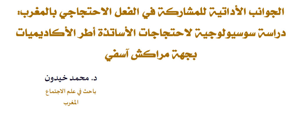 الجوانب الأداتية للمشاركة في الفعل الاحتجاجي بالمغرب: دراسة سوسيولوجية لاحتجاجات الأساتذة أطر الأكاديميات بجهة مراكش آسفي