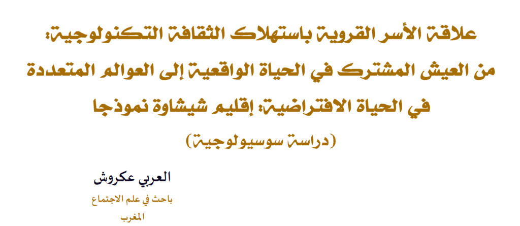 علاقة الأسر القروية باستهلاك الثقافة التكنولوجية: من العيش المشترك في الحياة الواقعية إلى العوالم المتعددة في الحياة الافتراضية: إقليم شيشاوة نموذجا (دراسة سوسيولوجية)